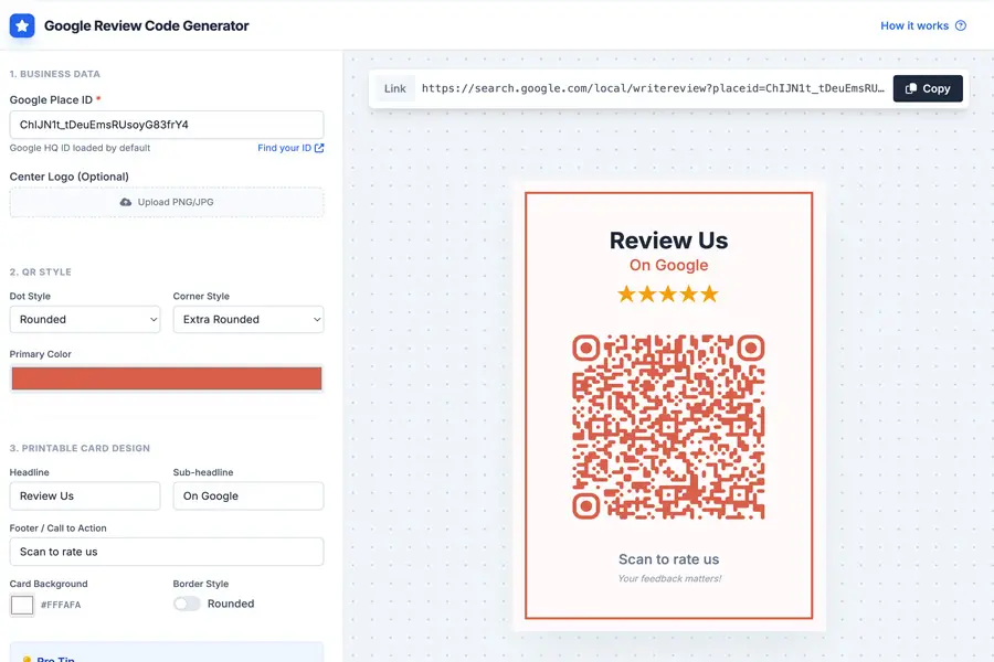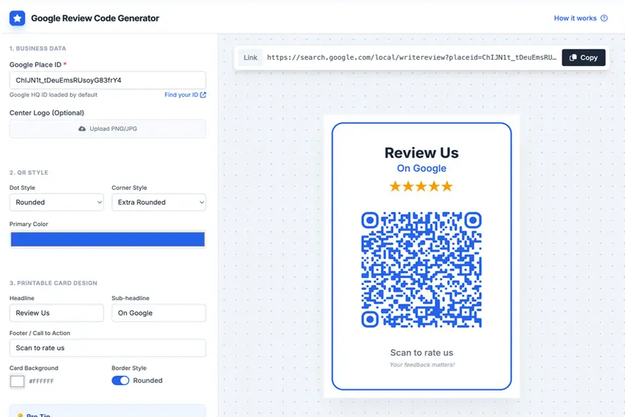 Make it effortless for customers to leave Google reviews by sharing a simple link or QR code. More reviews mean stronger trust, better visibility, and more new customers finding your business.