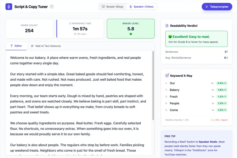 Paste your marketing script and instantly clean it up for clarity and flow. Great for polishing sales scripts, voiceovers, and promo messages without rewriting from scratch.