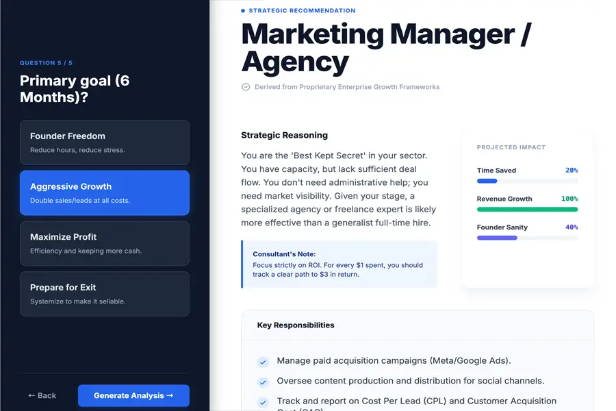 Understand who you should hire next to support growth without overhiring. Make smarter staffing decisions based on your real needs.